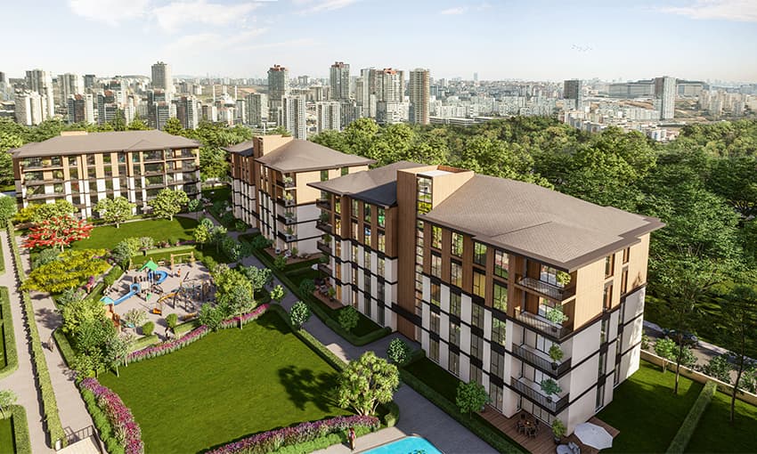 مجمع حديث مطل على الغابة في باشاك شهير، اسطنبول