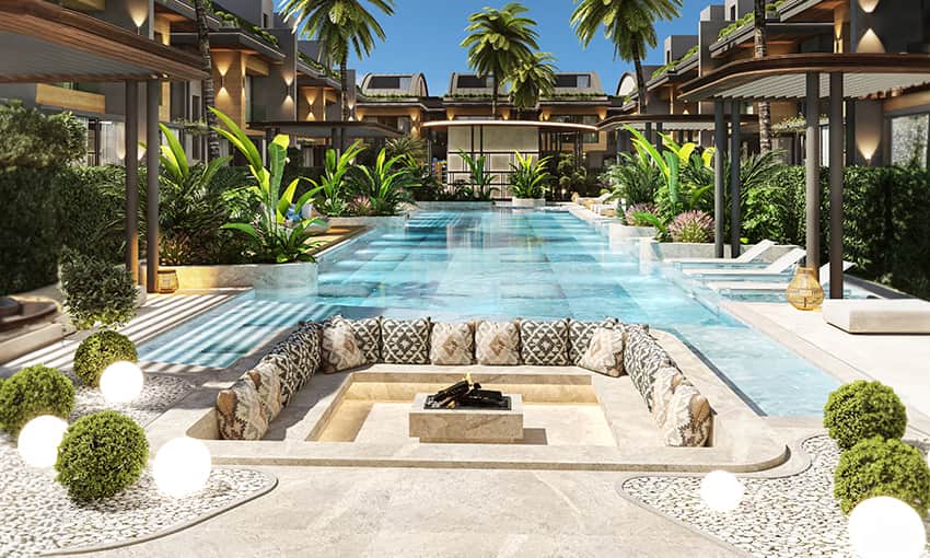 - Социальные объекты занимают просторную территорию площадью 2800 м² для отдыха и релаксации.